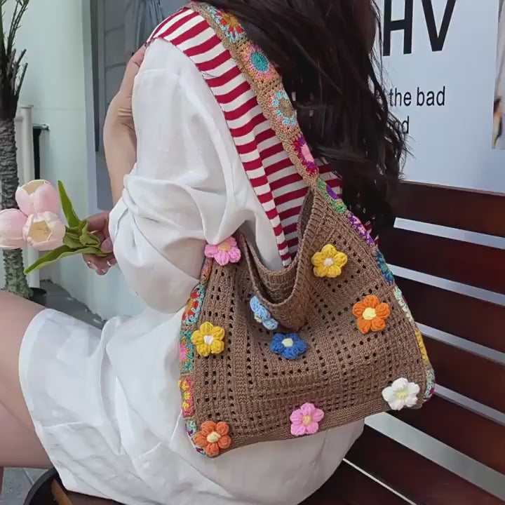 A Bolsa Bohemian Retro é um acessório artesanal com flores contrastantes, trazendo charme vintage e estilo descontraído para todas as estações. Ideal para looks leves e criativos.